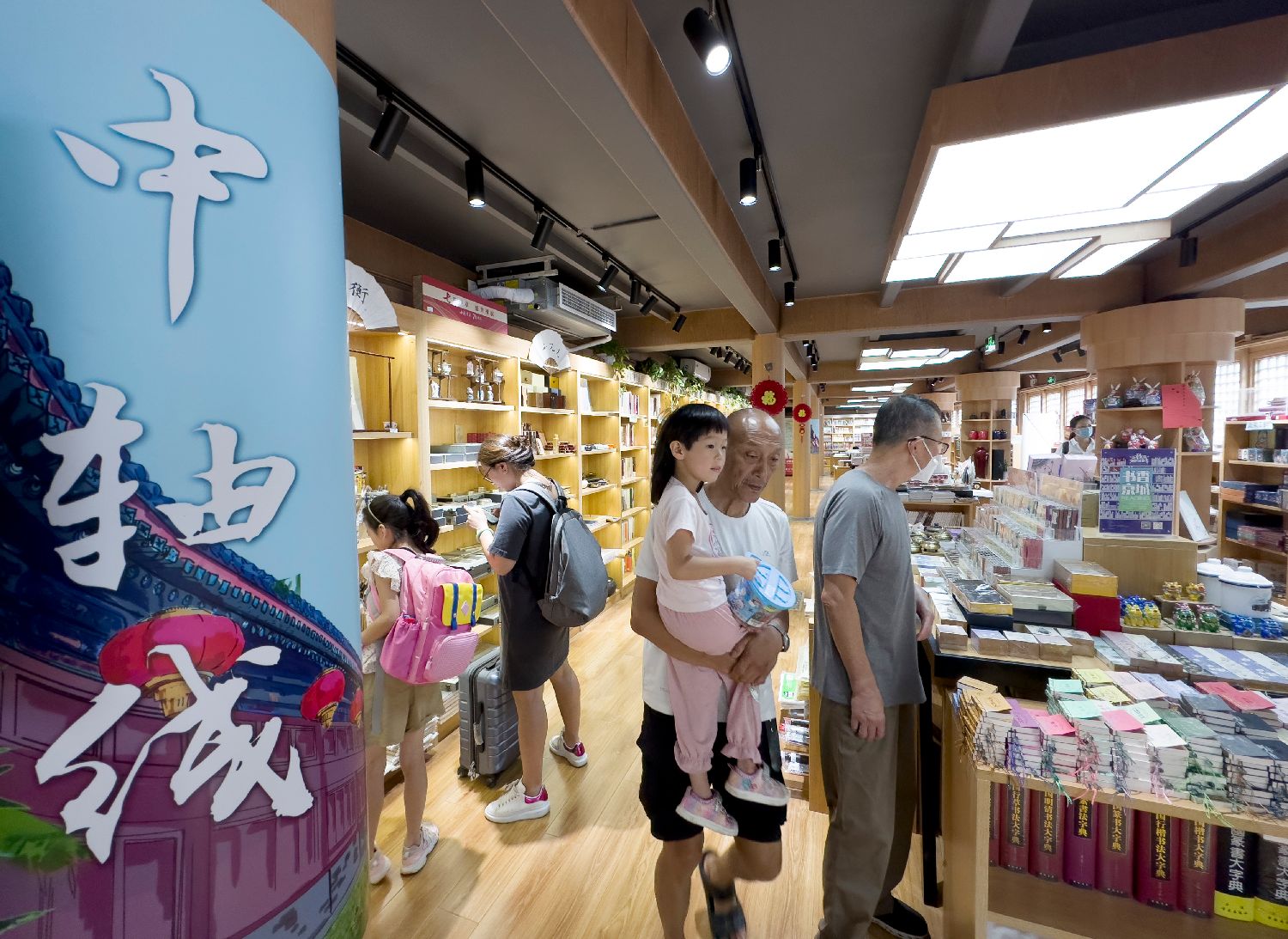 9月16日,读者在中国书店内选购书籍及文创产品。(黎明 摄)
