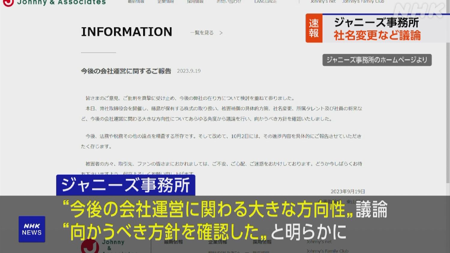 (日本头条讯)据该公司网站报道,关于四年前去世的约翰尼·喜多川性侵问题,杰尼斯事务所于9月19日召开了董事会,讨论了公司未来经营的主要方向。