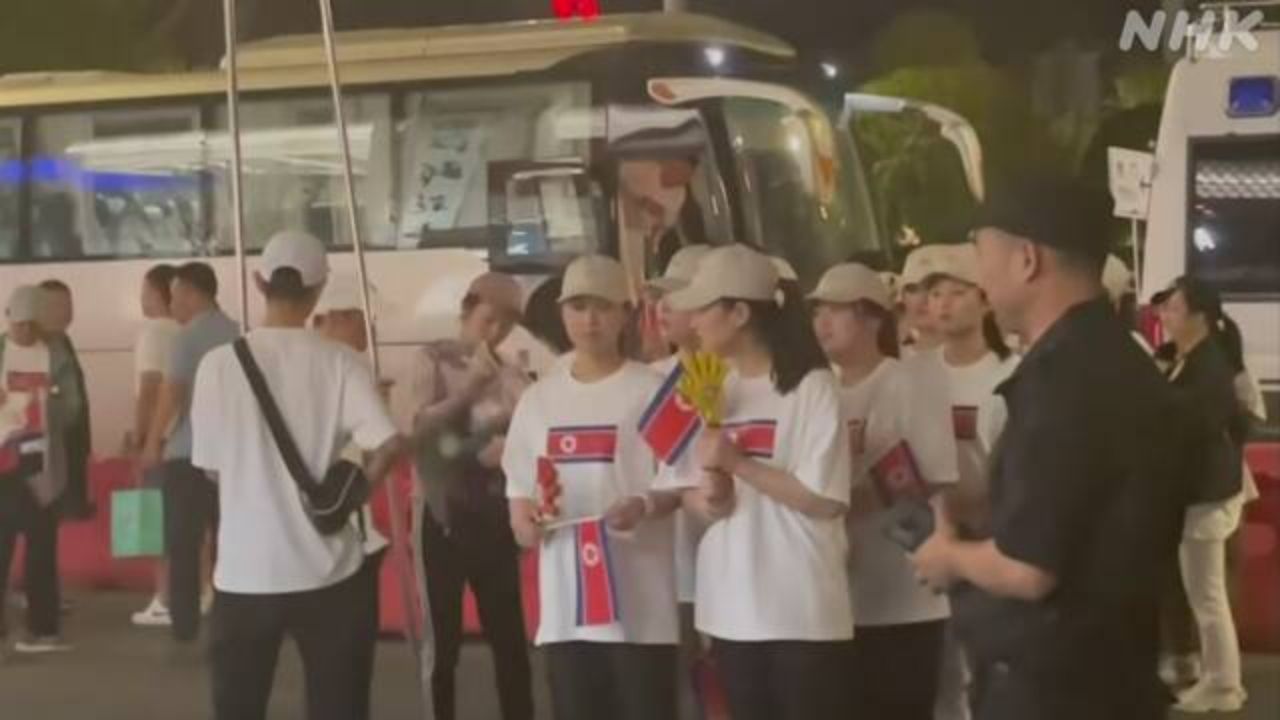活动当晚,啦啦队员们统一身着印有朝鲜国旗的队服,从下车到入场期间面对媒体的提问没有进行回应。