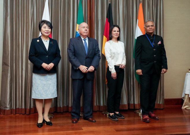 日本、德国、巴西和印度,正致力于争取成为联合国安全理事会的常任理事国,在本次外交部长会议上,这四个国家表示将加快合作进程,以在设定期限内取得具体成果,并就安理会改革交换了意见。