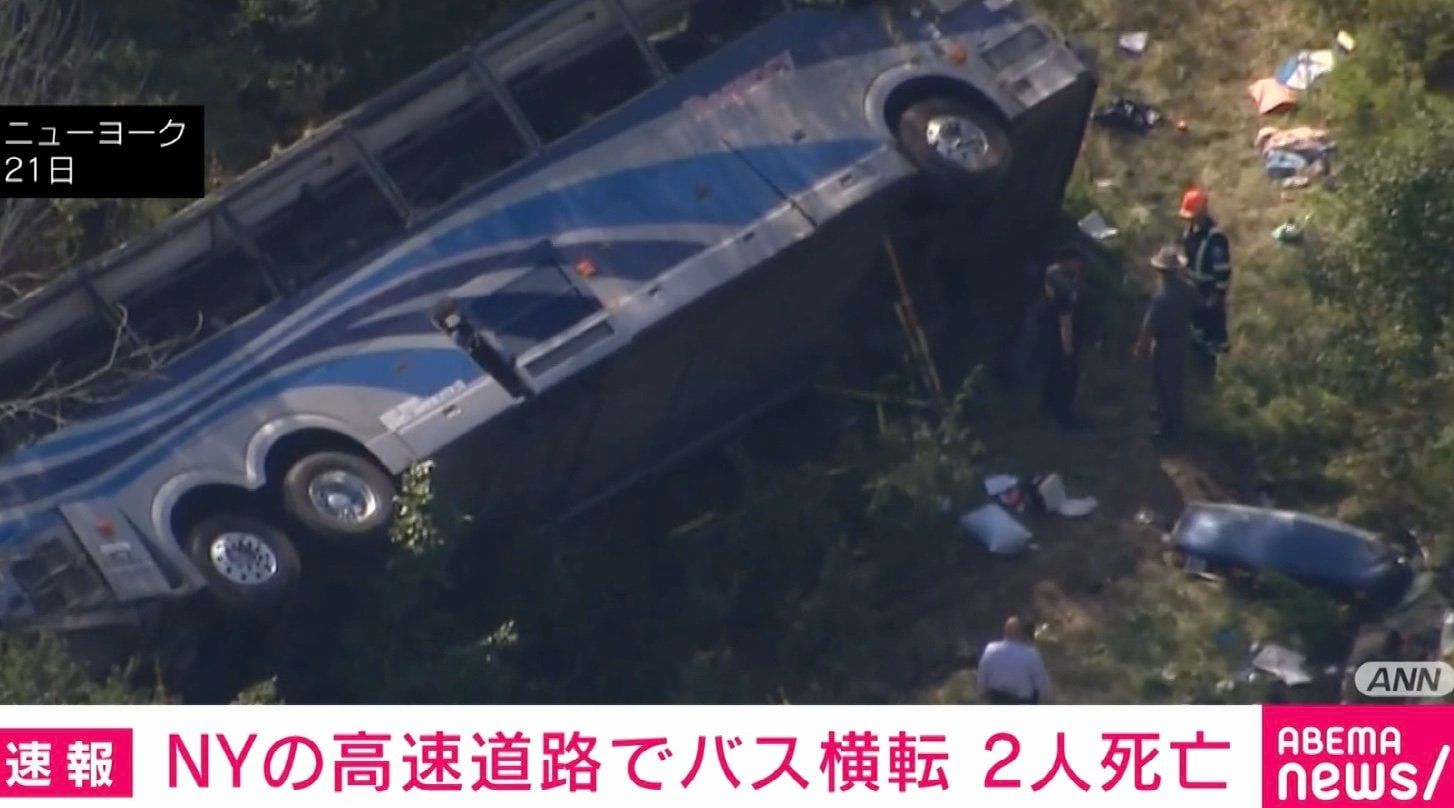 据当地媒体报道,这辆大型巴士是纽约州一所高中包租的,高中生们乘坐几辆巴士前往宾夕法尼亚州东部。