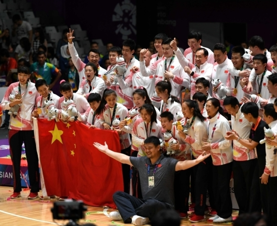资料图:2018年9月1日,在雅加达亚运会男篮决赛中,中国男篮击败伊朗,时隔八年重夺亚运会冠军。(图/中新社)