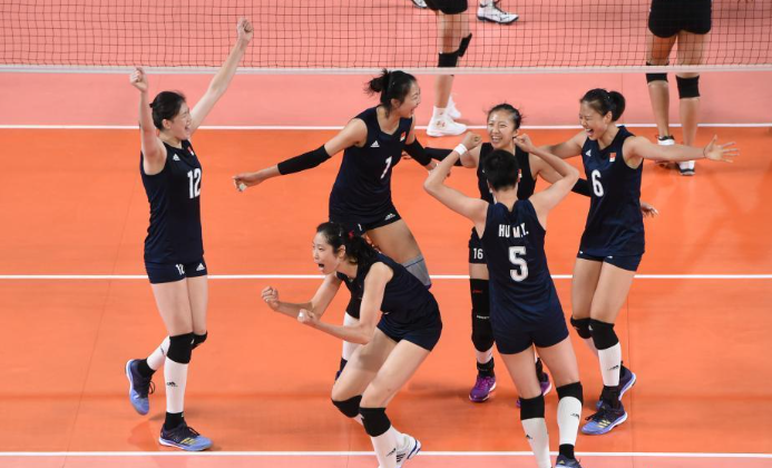 资料图:雅加达亚运会,中国女排夺冠。(图/中新社)
