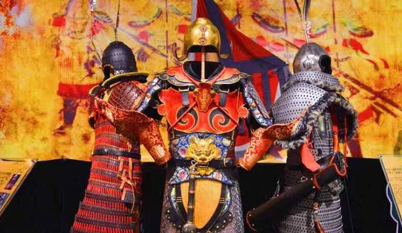 近日,《中国历代戎服特展》在云锦博物馆一层中厅惊艳亮相。(图/南京《扬子晚报》)