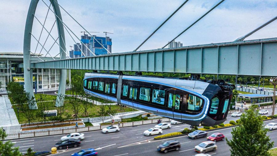悬空飞驰!中国首条悬挂式空轨正式运营