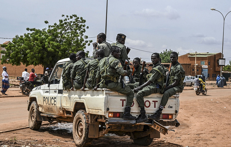 △当地时间8月27日,尼日尔国家警察在首都尼亚美街头巡逻。