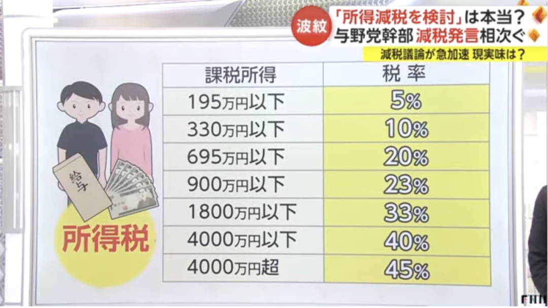 综上来看,多数在日打工人的收入可能比日本人低,所得税率可能集中在20%,如果日本政府实行所得税减税,对于「物价飞涨+日元贬值工资越来越不值钱」的打工人来说,简直是再好不过了!