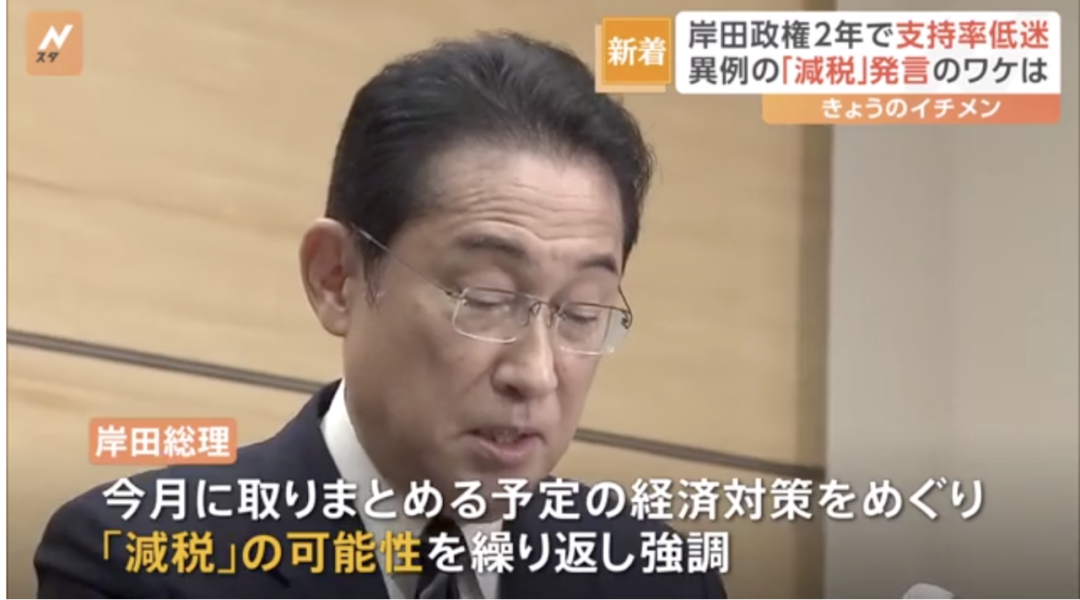日媒报道称:岸田对于「增税眼镜男」这一在国民间广泛流传的外号极其不满,声称“我也没怎么增税”,为了挽回自己的形象及可怜掉底的支持率,才“反常”地反复提「减税」口号,老大一开口底下也开始配合行动起来…