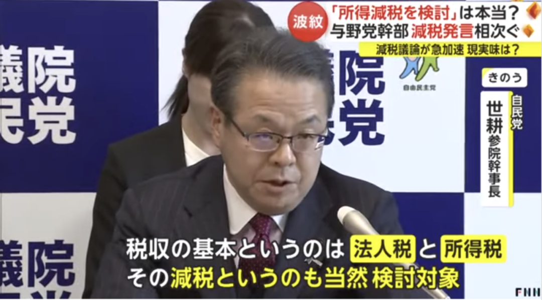 日本参议院干事长世耕表示:“税收的基本来源就是「法人税」与「所得税」,一提「减税」,这些自然也是在讨论减税的对象内。”