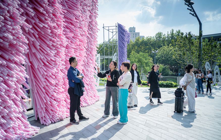 中国国内知名服装品牌雅戈尔在展会的最高一层举办“源来如此”可持续艺术展。(上海上观新闻网)