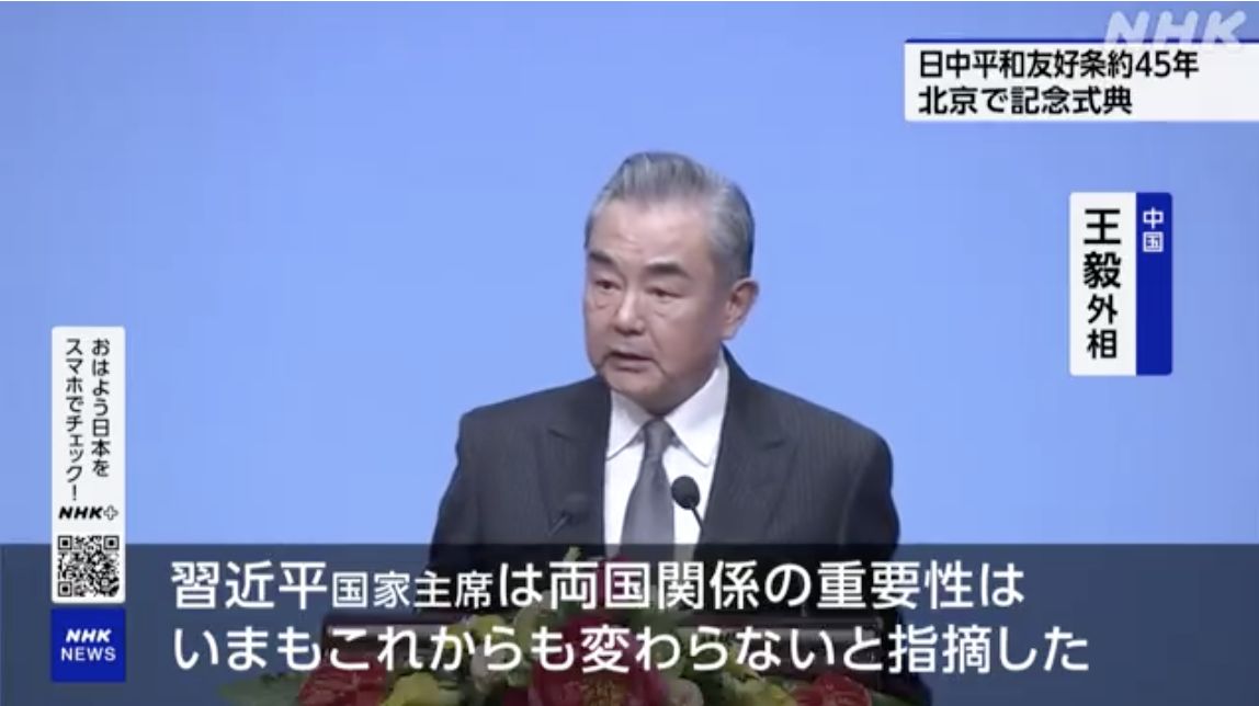 中日和平友好条约45周年纪念仪式在北京举行,王毅及福田康夫发表致辞