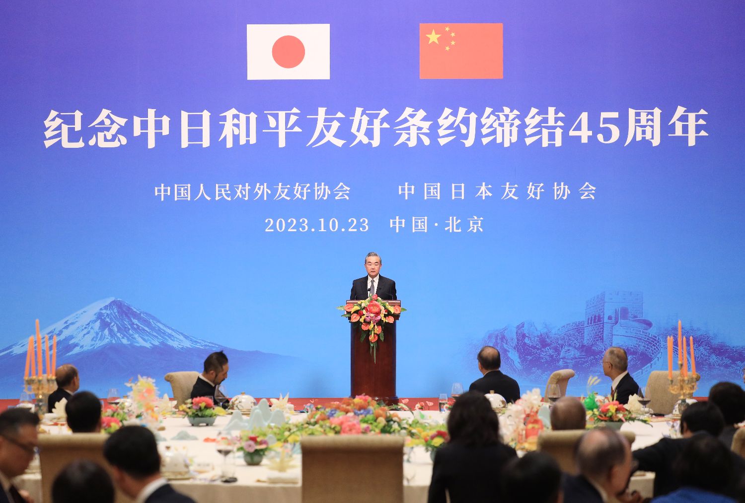 10月23日,中共中央政治局委员、中央外办主任王毅出席纪念中日和平友好条约缔结45周年招待会并致辞。(郑闻 摄)
