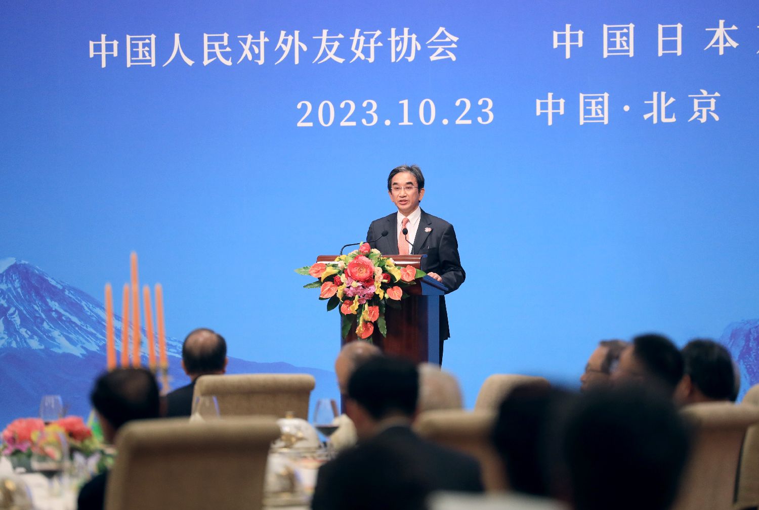 10月23日,日本驻华大使垂秀夫在招待会上致辞。(郑闻 摄)