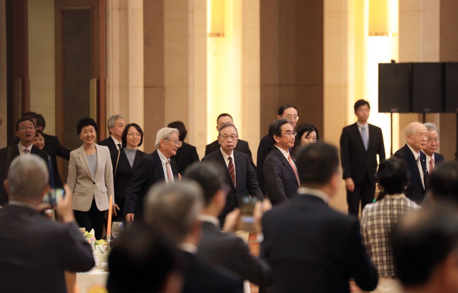 10月23日,出席招待会的日中两国嘉宾步入活动现场。(郑闻 摄)