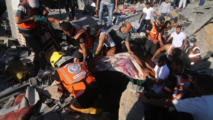 截至23日,巴以本轮冲突已致双方超6500人死亡。(图/中国央视新闻)