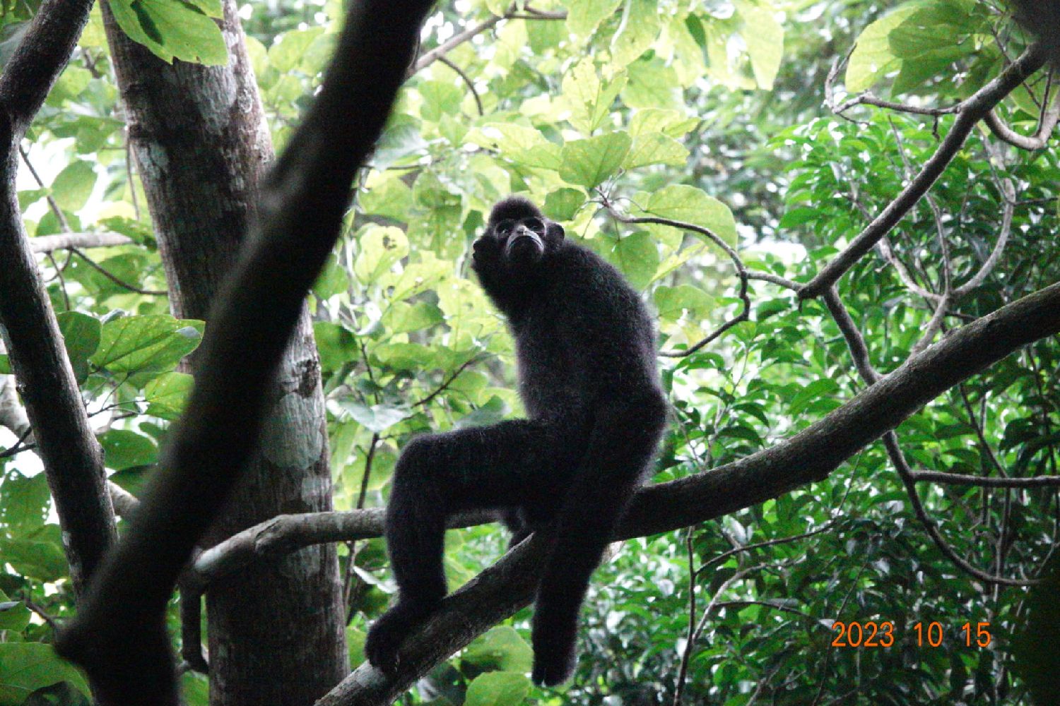 这是2023年10月15日在海南热带雨林国家公园霸王岭片区拍摄的海南长臂猿。(新华社)