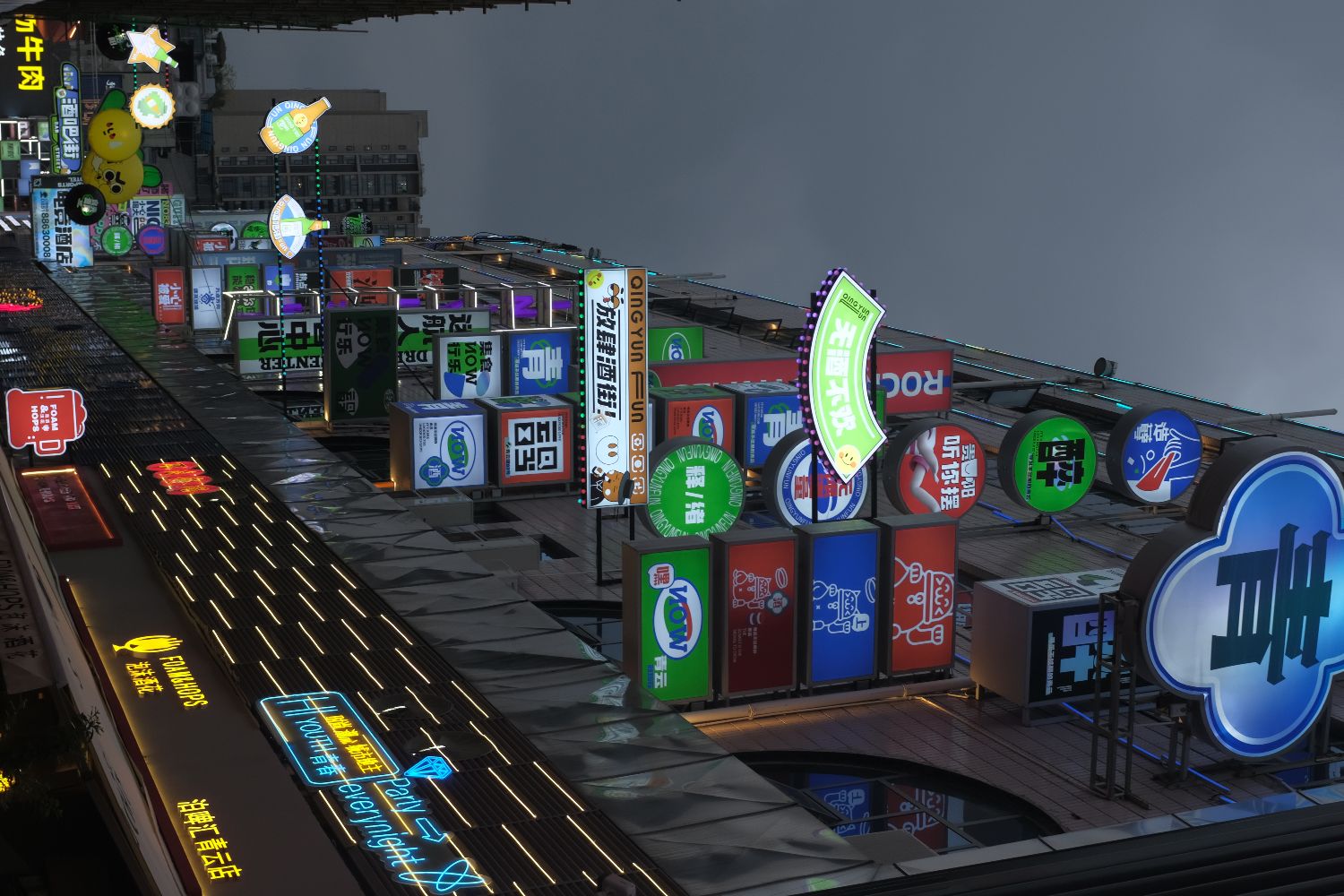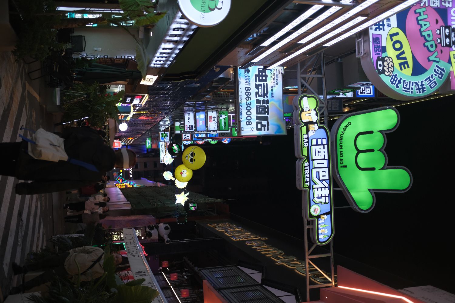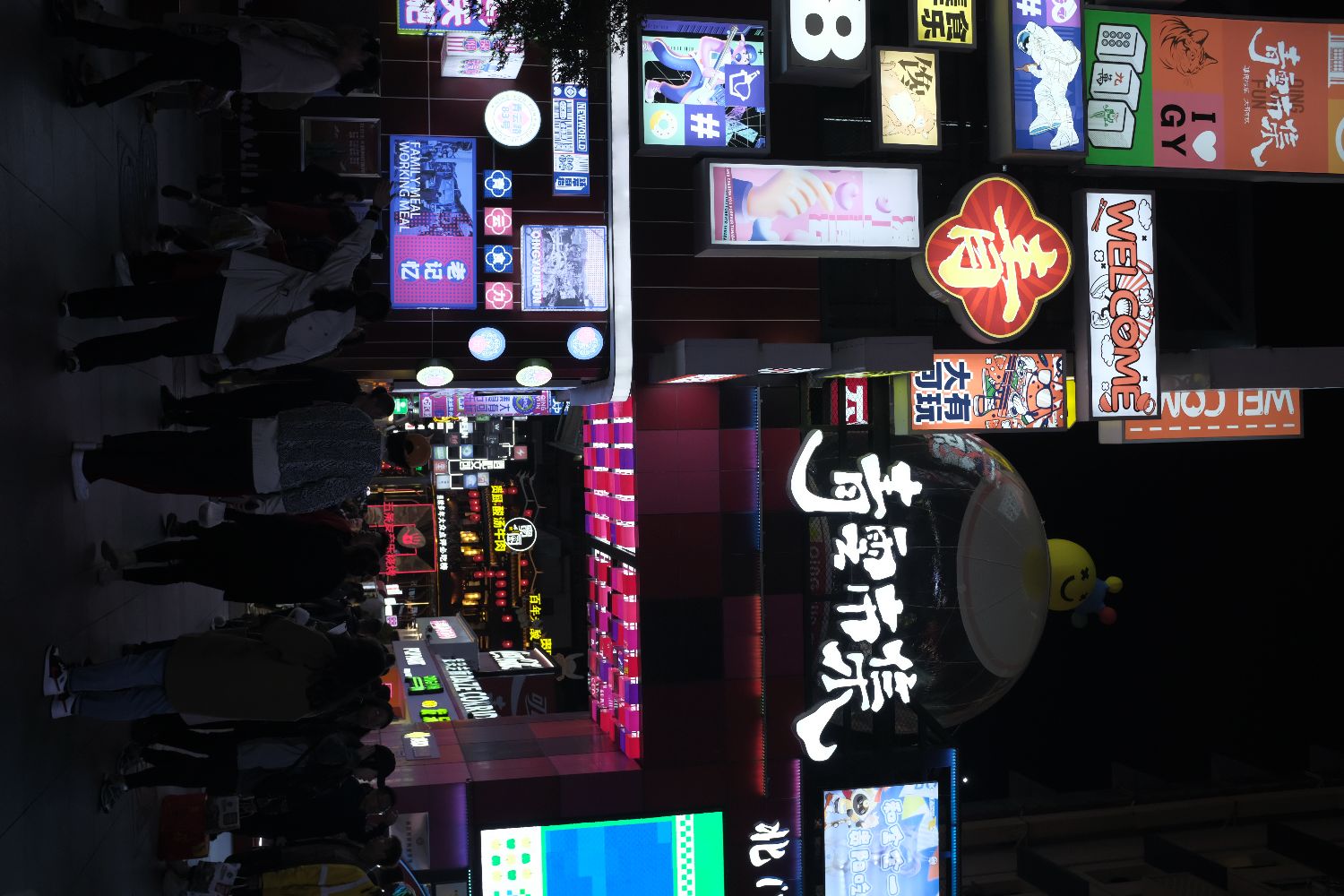 2022年,青云路步行街“青云市集”二期开业。青云市集2.0引入休闲体育、电竞、KTV、酒吧等业态,增加香薰、手作、杂货铺等文创品类。图为青云路步行街的一处灯牌,在夜幕下十分绚丽夺目。(园子 摄)