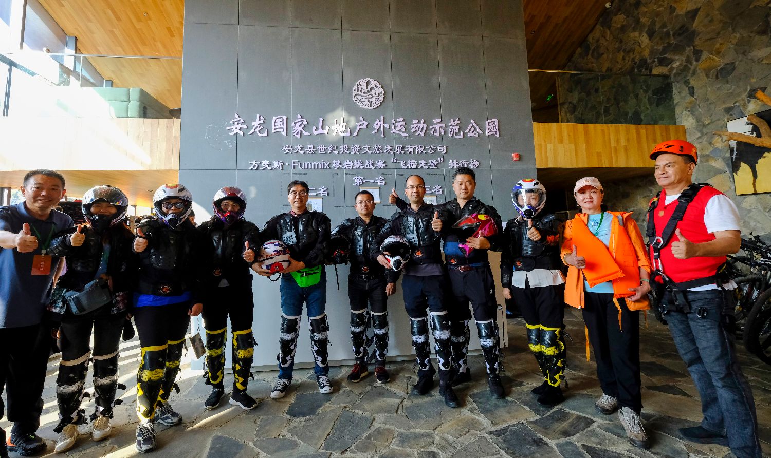 图为参与体验越野车和攀岩项目的华媒代表合影留念。(园子 摄)