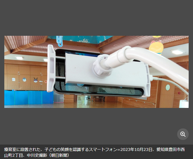 《朝日新闻》2日报道,丰田市这家儿童发育支援中心“Tanpopo”有38名需要康复肢体运动功能的儿童。具有笑脸识别功能的智能手机被安装在了这里的3间医疗室里。如果事先登记了儿童的照片,系统就会找到并拍摄儿童的笑容。