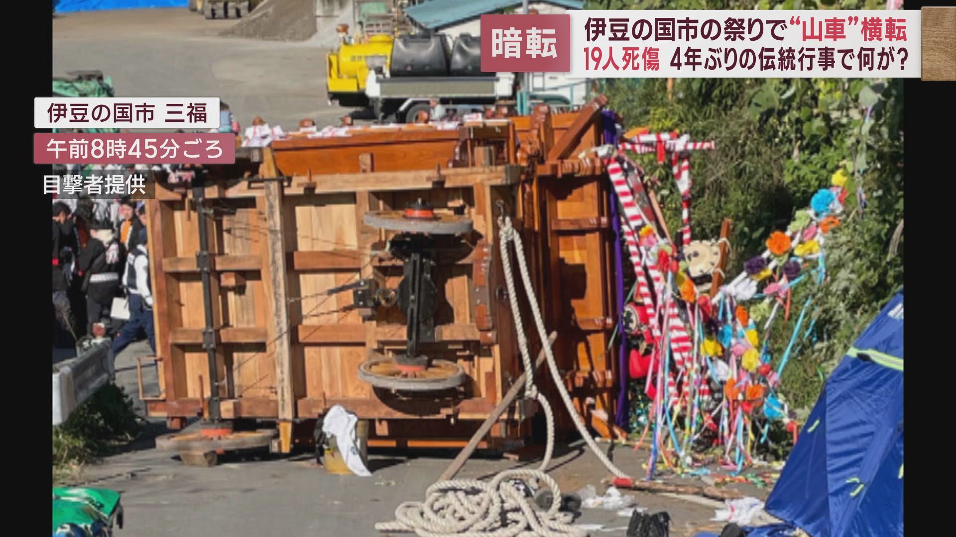 据警方称,翻倒的花车是伊豆之国市田京广濑神社一年一度的祭祀活动中的几辆花车之一,当时人们正在花车上演奏乐器。1名72岁的当地居民在事故中身亡,此外有5人受重伤,13人受轻伤。
