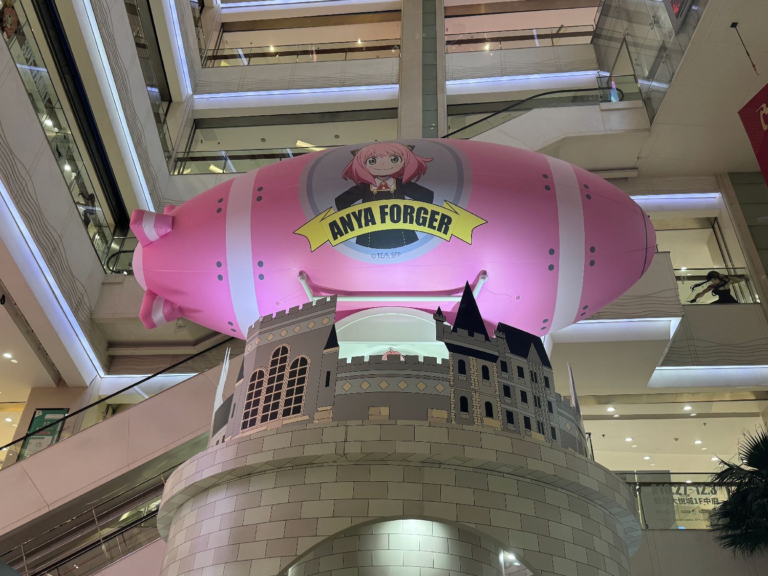 图为11月4日,在北京朝阳大悦城中庭升起带有阿尼亚的粉色飞艇。(园子 摄)