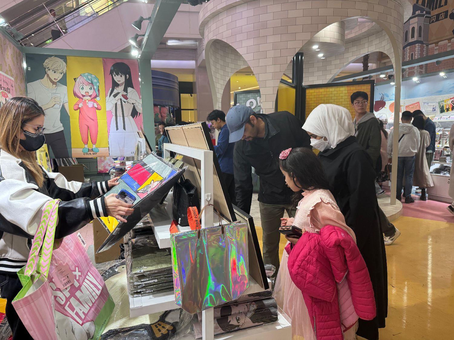 “间谍过家家”在全球都收获了不少粉丝。图为11月4日,有一些国际面孔也来店内挑选周边产品。(园子 摄)