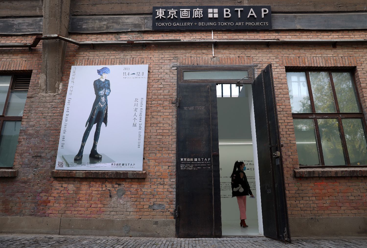 2023年11月7日,参观者在展厅内欣赏展览。近日,日本雕塑艺术家北川宏人个展《斗篷和面具,内与外》在北京東京画廊+BTAP开幕,展出近10件最新作品。据介绍,1990年北川宏人从金泽艺术大学雕塑系毕业后,只身前往意大利。北川在意大利学到了决定性的赤陶技术,他几乎不画草稿,直接上手用粘土造型。赤陶这种在意大利被边缘化的材料却让北川找到了绳文时代的单纯与自由。朴拙的质地以及在过程中保留艺术家创作痕迹如拍打、形塑甚至指印等的特质,因而成为贴近艺术家期待和感受的媒材。(黎明 摄)