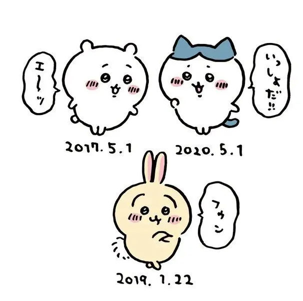 这几个乍一看好像长得都差不多的小东西,都来自作品《ちいかわ》(吉伊卡哇,chiikawa)。