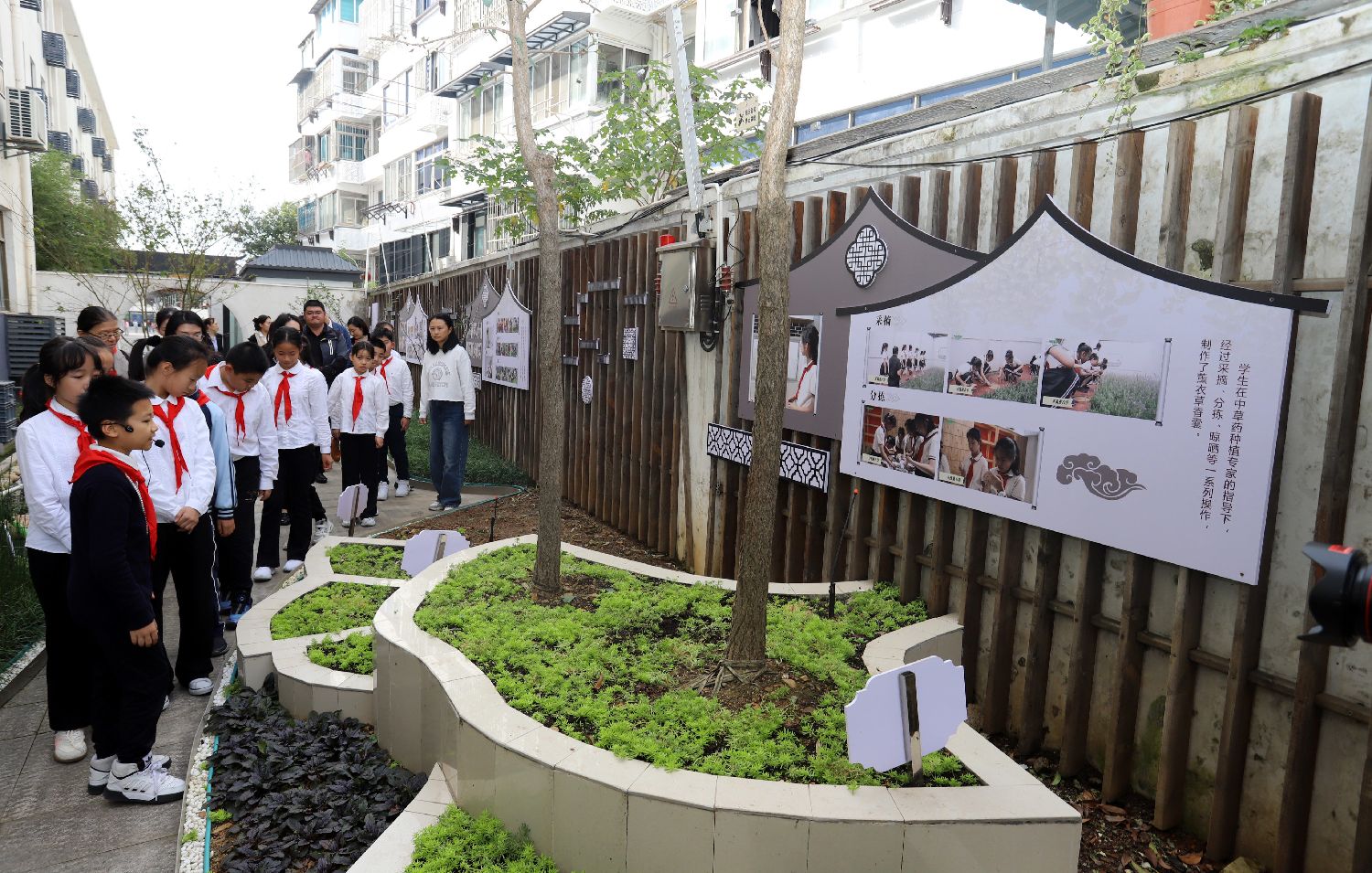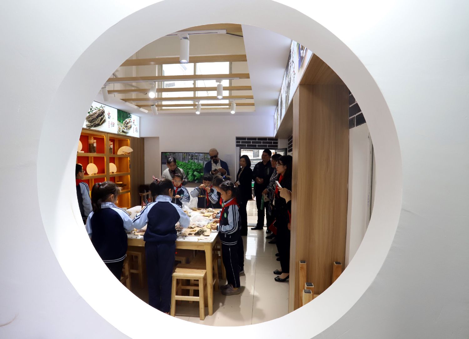 江苏省苏州市平江实验学校中草药文化馆11月8日开馆。图为学生在校园内的中草药文化馆参观体验。(中新社)
