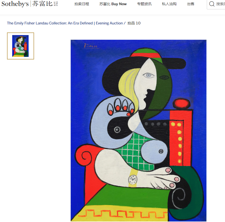 图为毕加索名作《戴手表的女人》。(图/苏富比拍卖行官网截图)