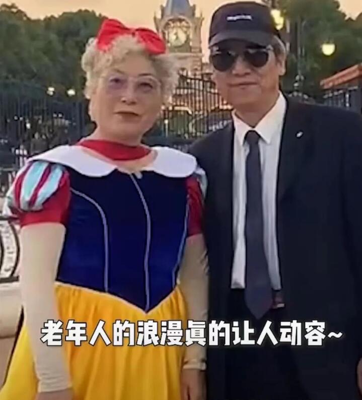近日,上海迪士尼小镇,一对年逾古稀的老夫妇在网上走红。视频里,爷爷穿着西装,绅士打扮,奶奶穿着“白雪公主裙”,化身为“童话里的钻石恋人”,出现在迪士尼门口的喷水池前。