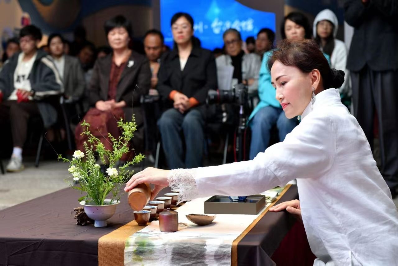 台湾中华茶艺家研究协会理事长、国际大观人文茶道书院创办人陈玉婷悠悠诉说着两岸的饮茶文化异同,5位来自台湾的茶艺师现场表演茶艺,产自台湾南投的冻顶乌龙茶飘香,久久不散。