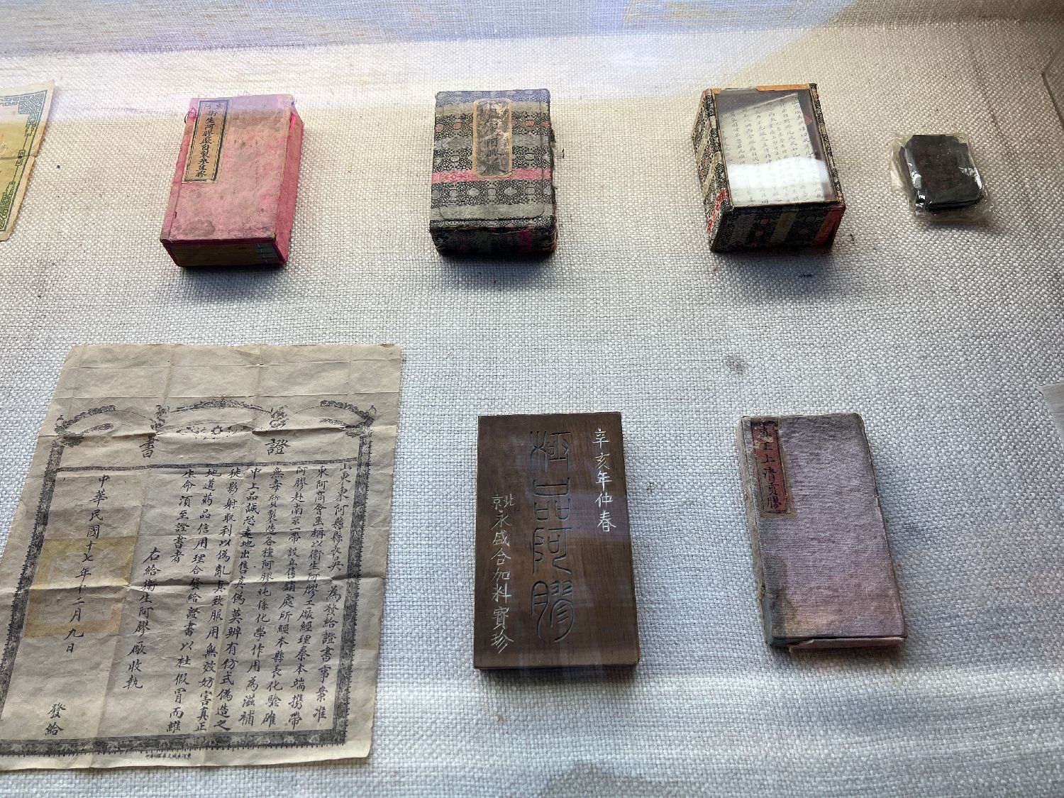 图为展厅内陈列的“清道光阿胶及仿单”。(江津 摄)