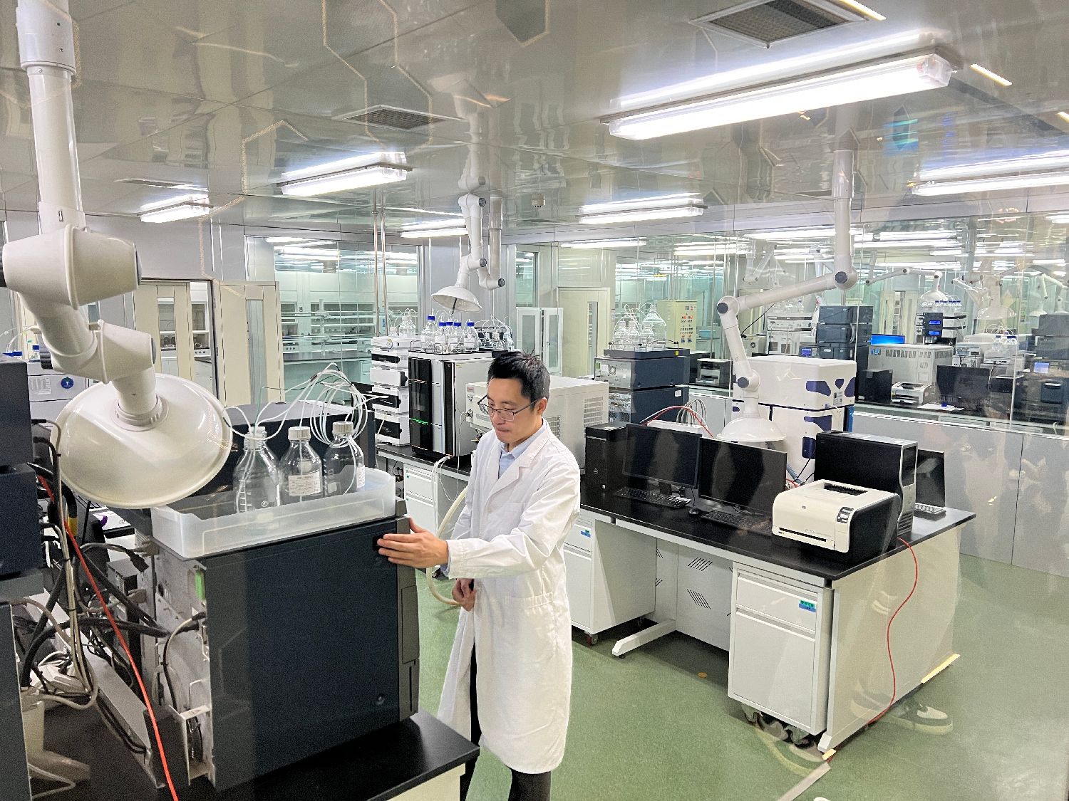 如今,消费者购买到的一块东阿阿胶就拥有187项专利,一支复方阿胶浆包含49项专利。东阿阿胶多次斩获中国全国质量金奖,12次入围世界品牌实验室发布的“中国500最具价值品牌”。图为“国家胶类中药工程技术研究中心”内,研究人员在实验室工作。(江津 摄)