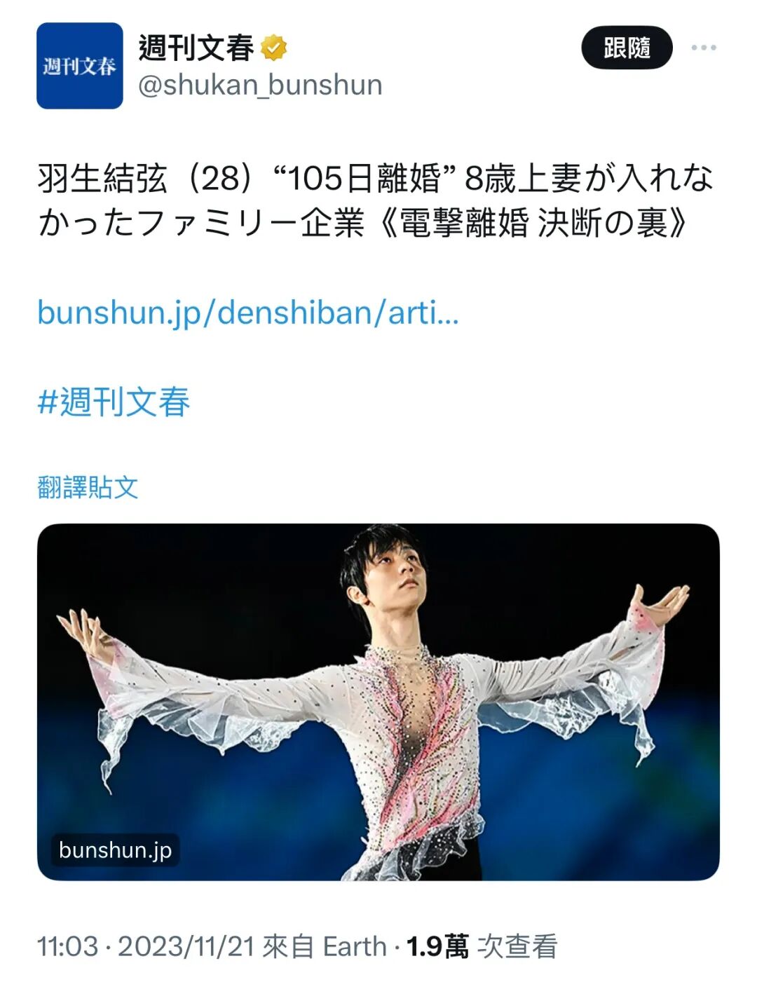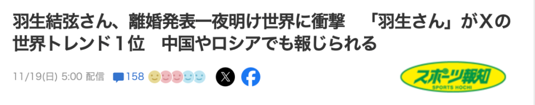 相信小伙伴们最近一打开手机,都能刷到“羽生结弦离婚”的相关报道。11月17日晚,羽生结弦透过官方社交平台宣布结束仅维持105天的婚姻。此事一出,不仅在日本,在中国、俄罗斯、新加坡、墨西哥等国家都引起广泛讨论。