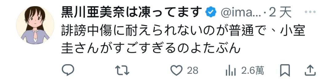 “不能承受诽谤中伤是人之常情,可见小室圭实在是太厉害了吧。”