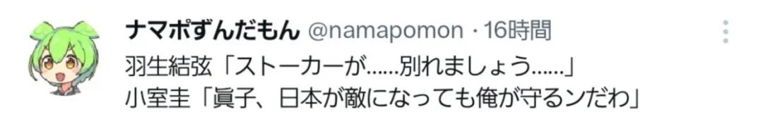 “羽生结弦说,为了保护爱人,因此选择分开…小室圭则说,真子,就算全日本与我为敌,我也要一直在你身边、守护着你!”