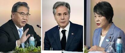 11月25日午夜过后20分钟,上川外相与美国国务卿威廉·布林肯和韩国外长朴钦进行了电话会谈。