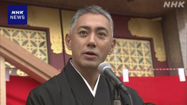 之后,在南座剧场举行了“挂牌仪式”,大约70个写有歌舞伎演员和表演者名字的牌子在剧场前升起,工人们爬上脚手架,将市川团十郎的牌子放在最后一个。