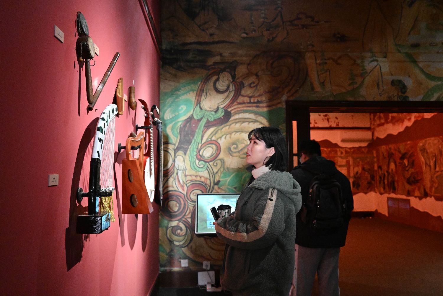 11月28日,观众在天津数字艺术博物馆内参观“发现敦煌——敦煌艺术情景式特展”。(新华社)