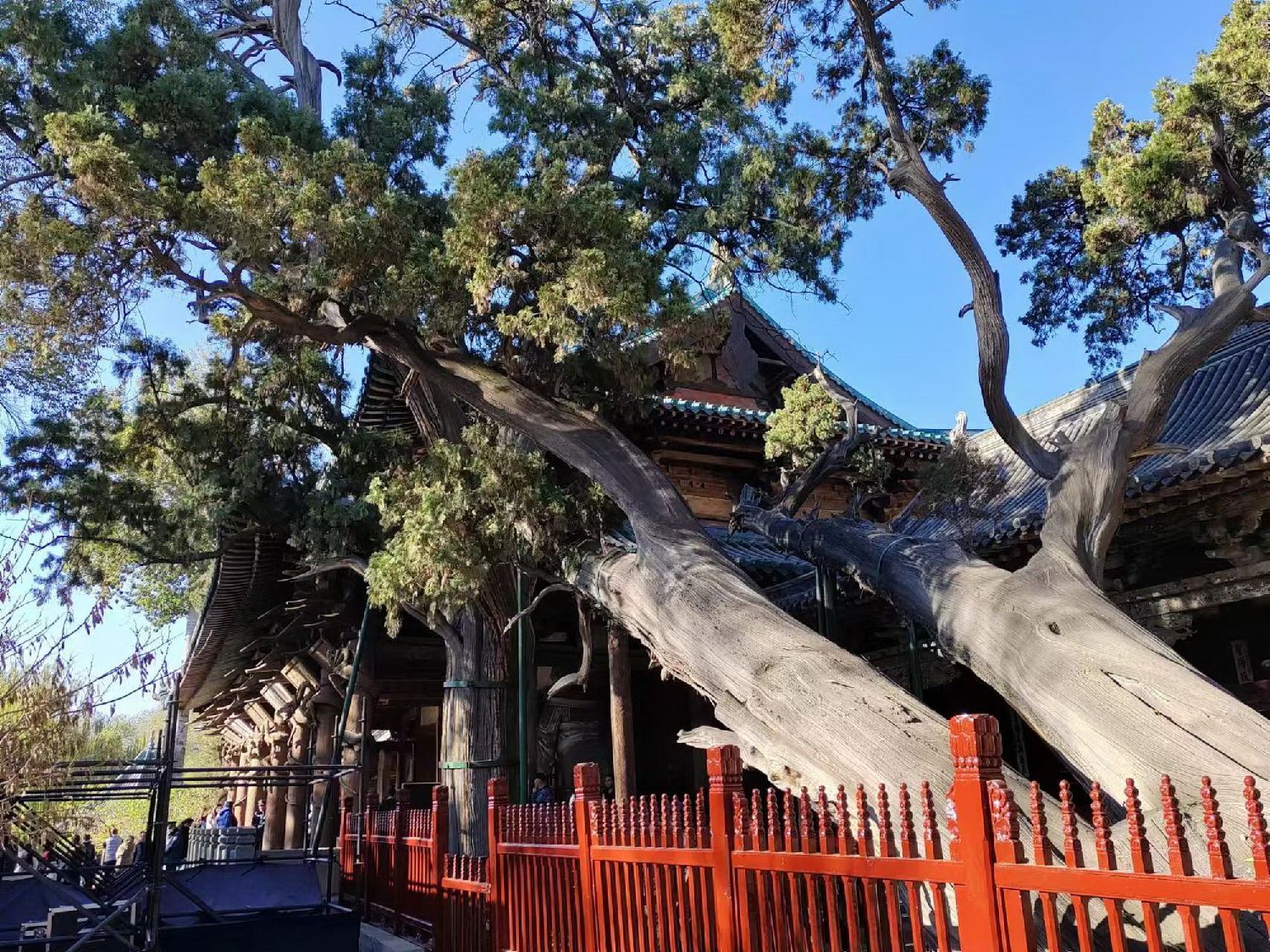 千百年来,古树与古建交相辉映,见证了晋祠的历史变迁。圣母殿东南侧,一株宋代种植的“螺旋柏”,因姿态奇特颇受游人青睐;王琼祠两侧,两株500年树龄的银杏树,每年秋季吸引大量游客拍照打卡。