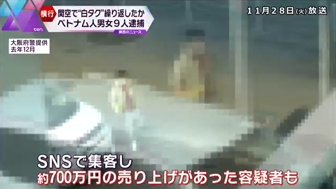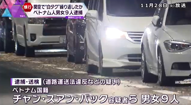 无独有偶,上个月在关西机场,9名越南人因在关西机场反复使用白牌车接送客人也被警方逮捕。
