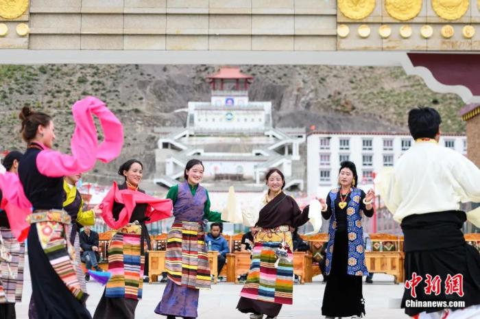 2020年7月,西藏昌都市洛隆县易地搬迁安置点阿托卡小康示范新村,村民载歌载舞庆脱贫。(图/中新网)