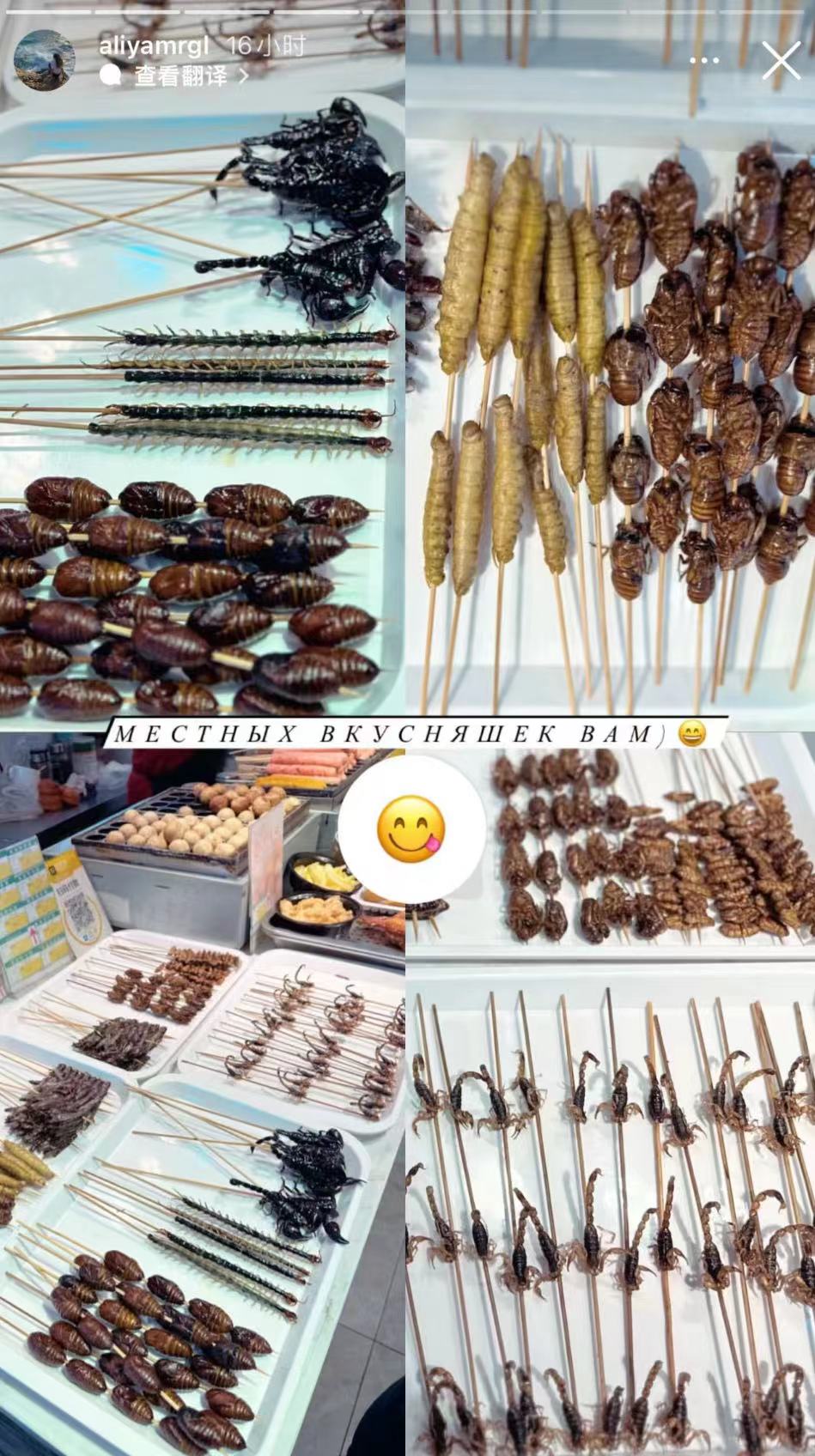 哈萨克斯坦队运动员们除了吃了正应季的糖葫芦之外,还品尝了炸蚕蛹和炸蝎子等高蛋白美食。不知道运动员们觉得虫子好不好吃,会不会觉得害怕。