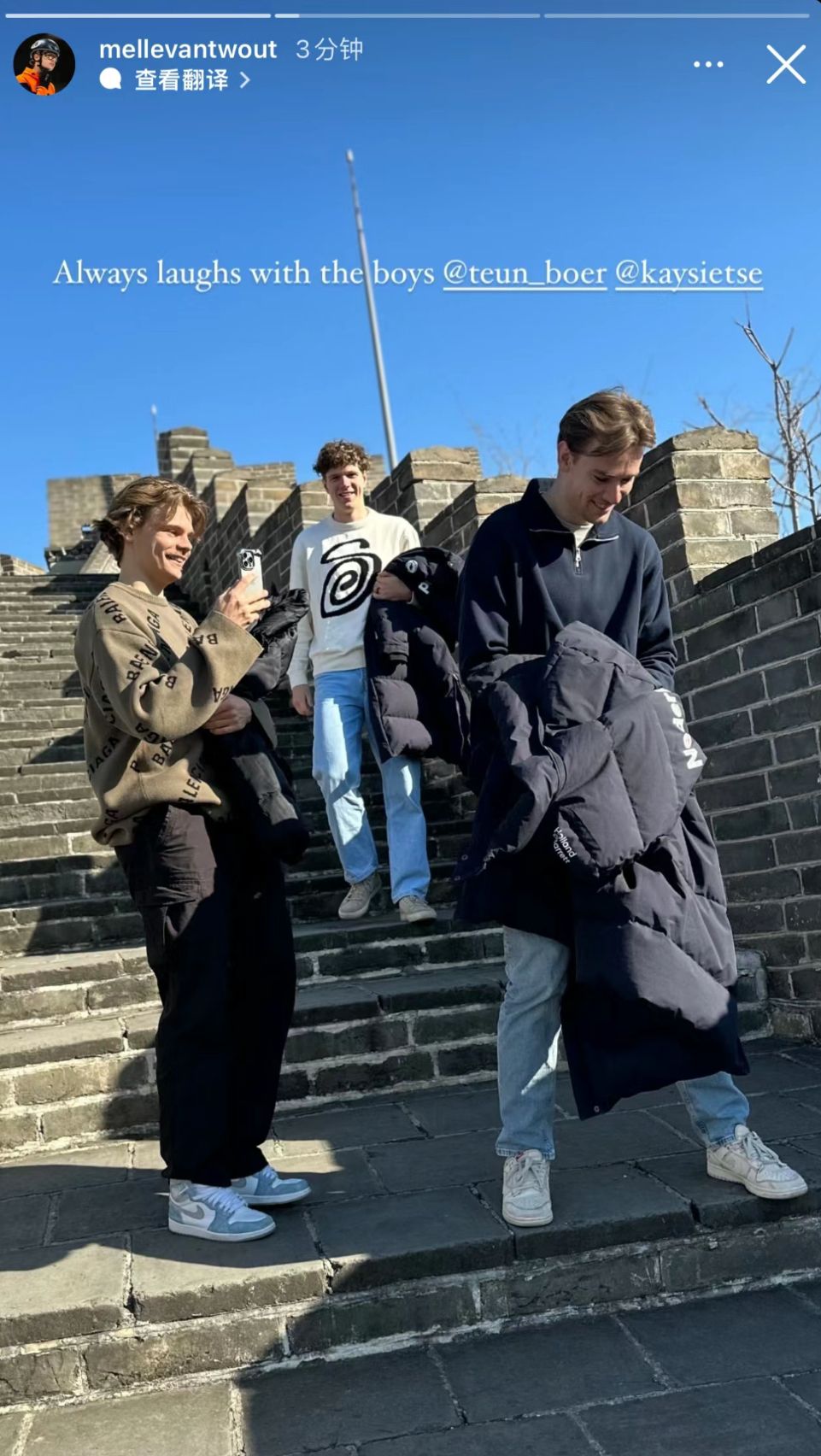 第二站,荷兰男队队员们就登上了长城并拍下了很多照片。