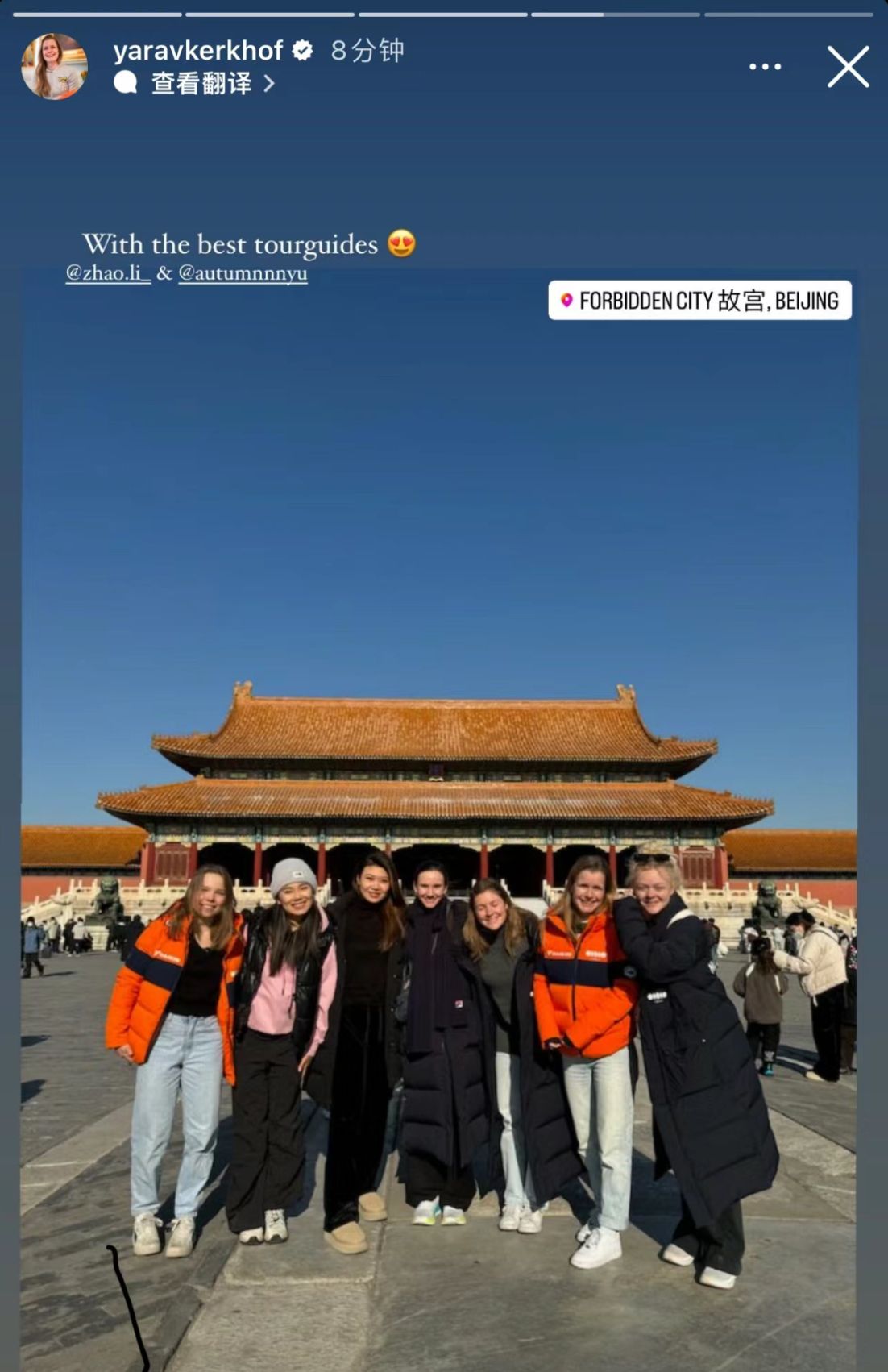 荷兰女队的队员们则是去打卡了故宫,并在故宫和她们的中国朋友拍了合影。