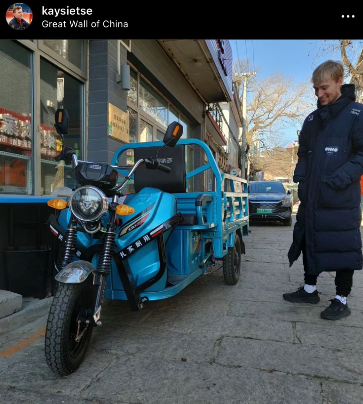 主打一个“烟火气”的荷兰男队还在北京街头与三轮车合影了。不知道他们想不想带一辆回去。