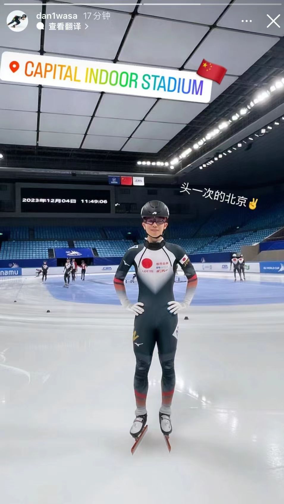 日本的运动员则是开启了冰上训练,并发了一条带有中文的照片到社交平台上。