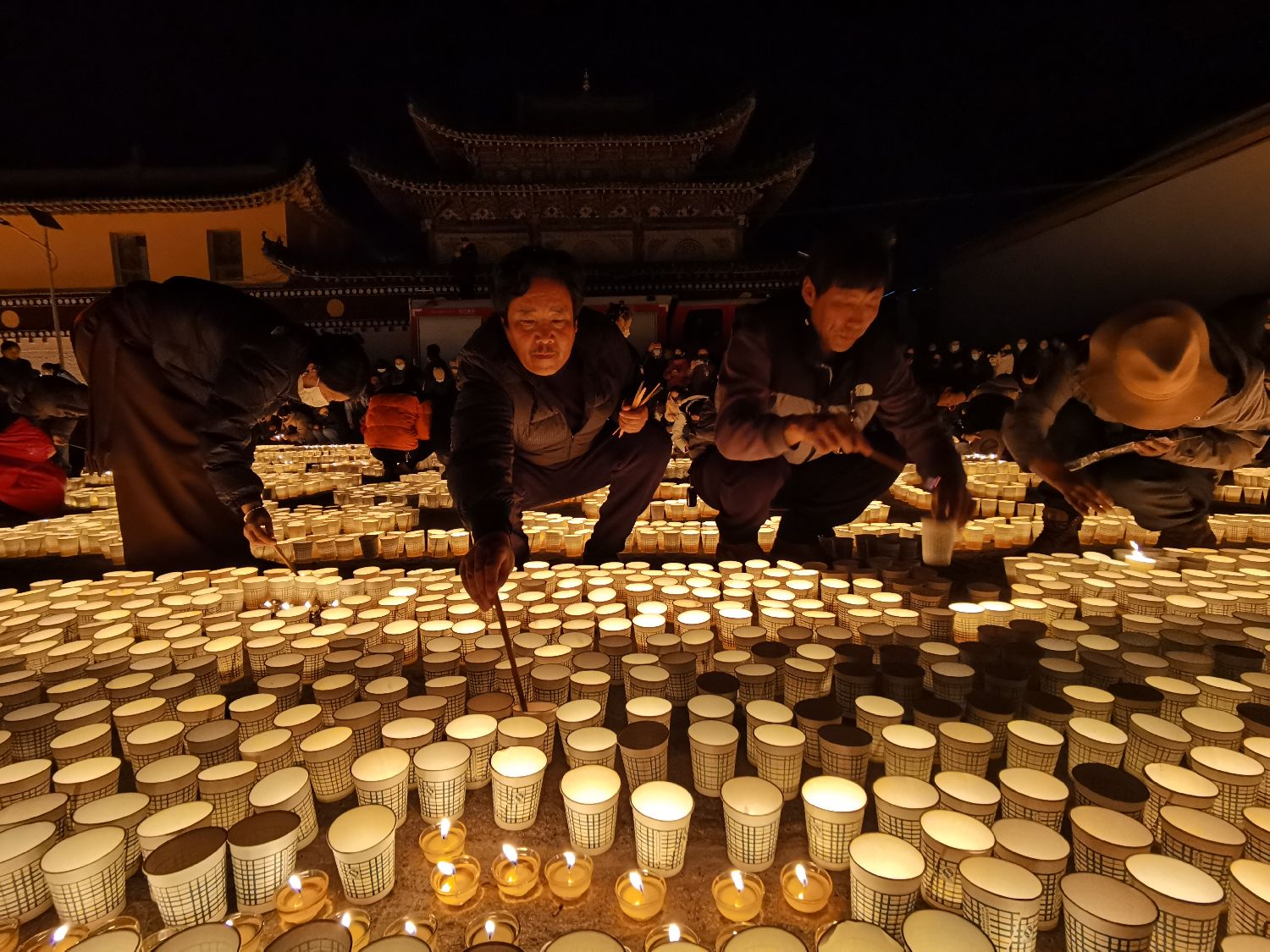 12月7日,青海隆务寺内的燃灯现场。(图/中新社)
