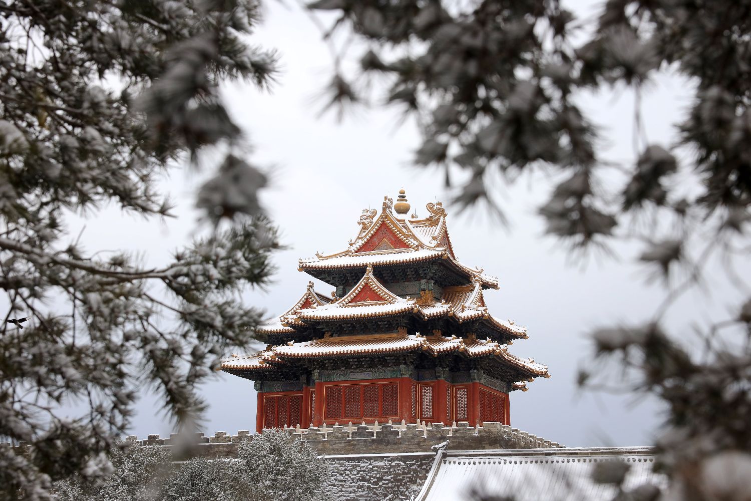 12月11日,雪后的北京故宫角楼。(郑闻 摄)